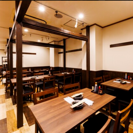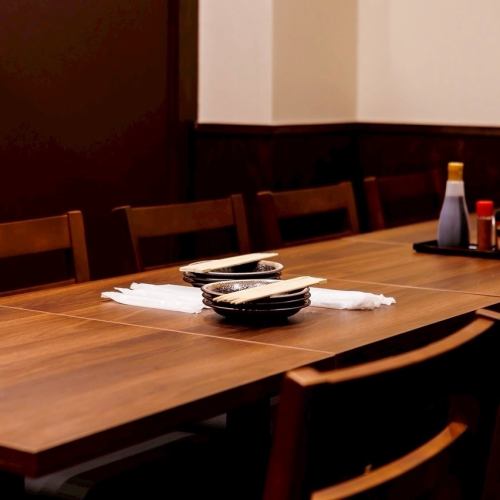 6名様向けのテーブル席は、周囲の視線を気にせず過ごせる半個室タイプ。グループでの食事や小規模宴会、会社の集まりなどに最適です。ほどよく仕切られた空間で、会話を楽しみやすく、落ち着いて過ごせるのが特徴。プライベート感のある雰囲気の中で、ゆっくりとお食事やお酒をお楽しみいただけます。